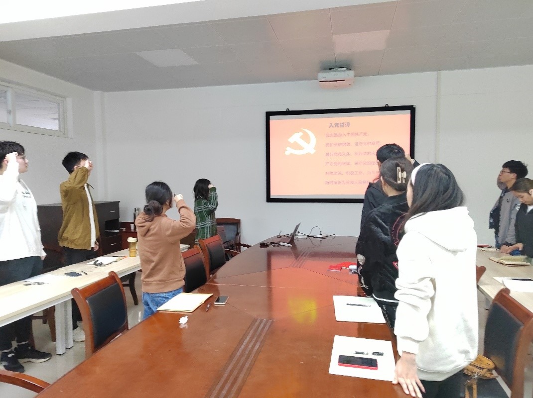 会议开始,全体党员在王敏羽同志带领下重温入党誓词,回顾入党初心,牢记党员使命。