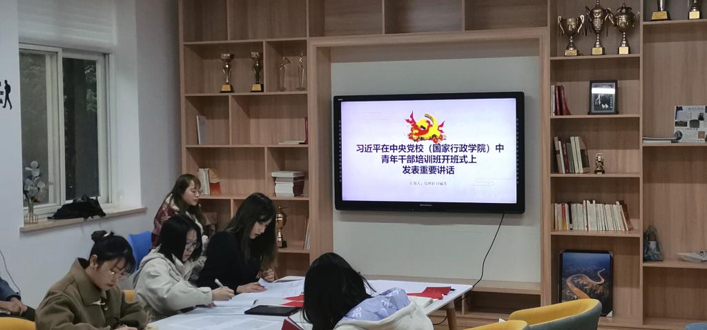 入党积极分子张晓婷、付毓秀共同分享了小组学习习近平在中央党校(国家行政学院)中青年干部培训班开班式上发表重要讲话的心得,针对总书记强调的年轻干部要信念坚定、对党忠诚、实事求是、担当作为,努力成为可堪大用能担重任的栋梁之才,付毓秀表示当今世界正经历着百年未有的大变局,作为青年我们更应该珍惜光阴、不负韶华、勤学苦练、增强本领,在全面建设社会主义现代化国家新征程中奋勇争先、建功立业。