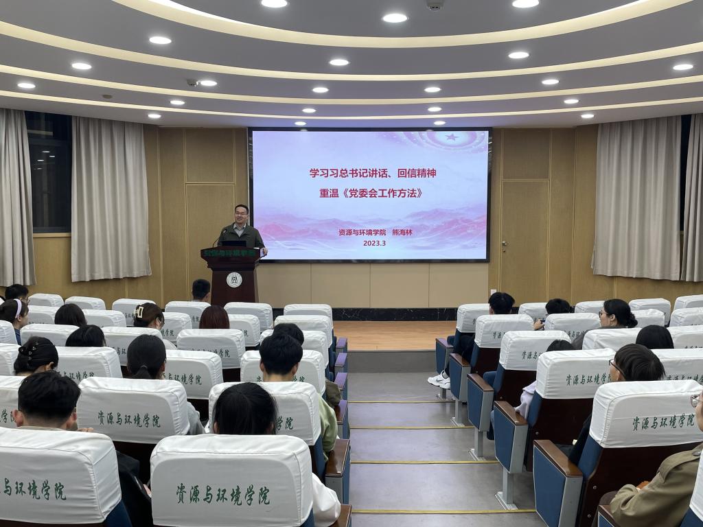 (通讯员:陈羽娟)3月10日晚上,学院研究生骨干在西附楼报告厅开展工作素养专题学习,学院党委副书记熊海林老师应邀做辅导报告。学院研究生辅导员胡志宏,研究生会、研究生党建办公室全体成员,各研究生党支部支委等参加学习。
