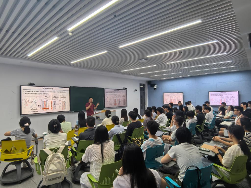 蔡鹏表示,科研不仅是在自己的学科领域深耕,也要适当跳出来,通过交叉学科提升研究质效。他向同学们介绍了团队通过自主搭建的微流控平台,同时结合显微成像、多组学技术研究多孔介质中的生物膜定植过程,从而揭示微尺度孔隙环境中土壤微生物群落构建过程与机制。同时鼓励研究生,要努力找寻科研兴趣、着眼国家需求、提升创新思维,在科研赛道中打造出属于自己的标签。