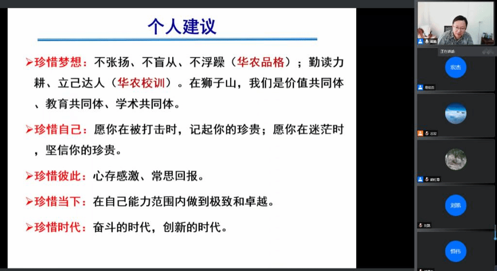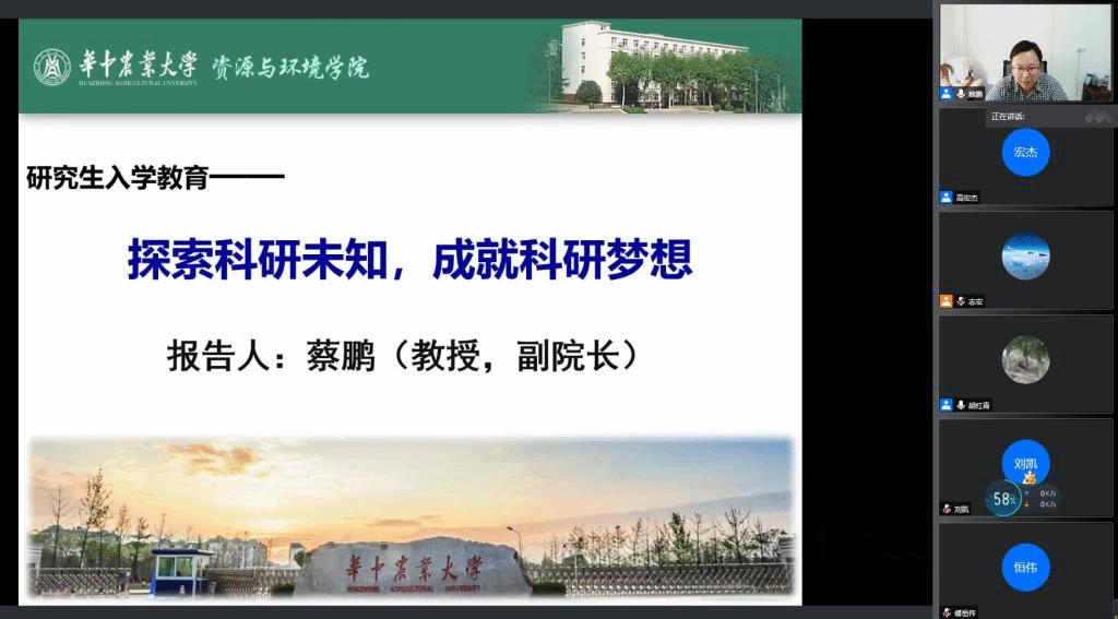 (通讯员 高宏杰)917日上午,学院副院长蔡鹏教授应邀与研究生新生畅谈“探索科研未知,成人生梦想”,受疫情影响,此次分享以线上形式开展,研究生辅导员胡志宏主持分享会。