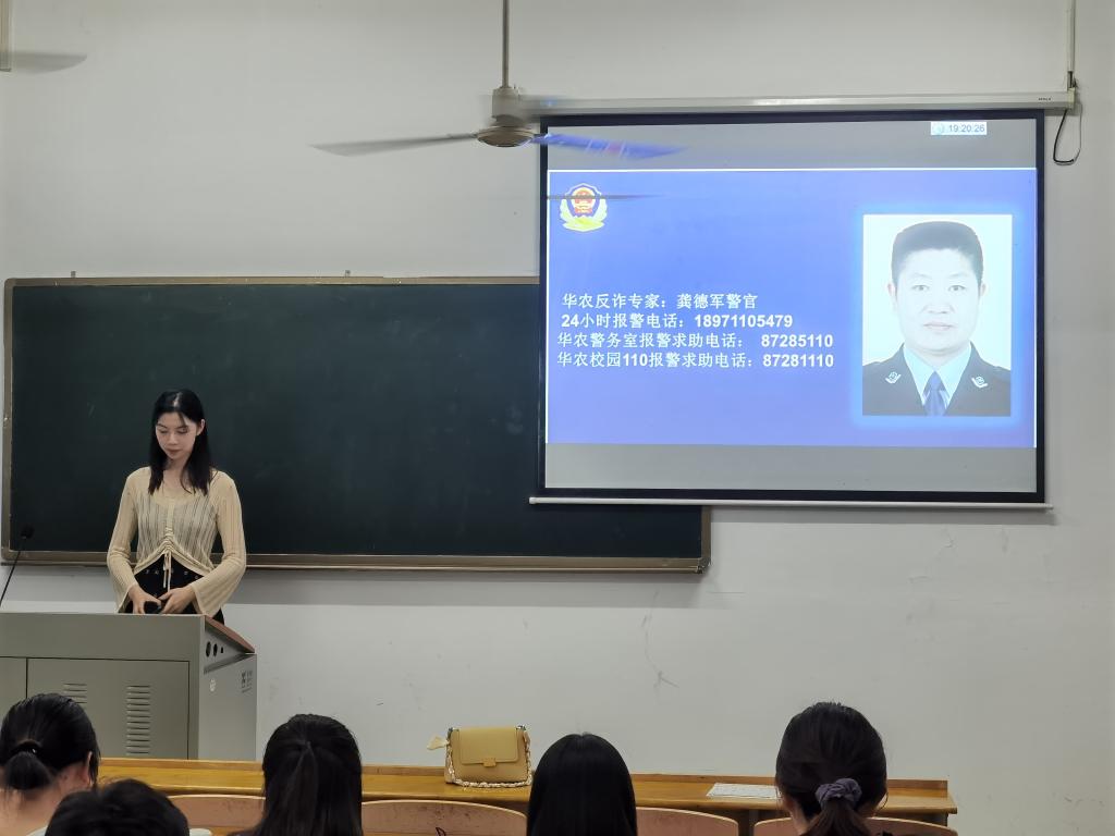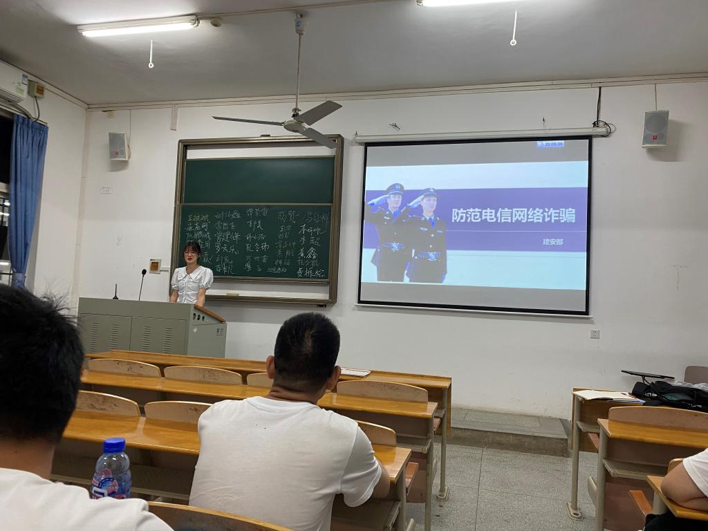 随后,下班支部书记开始对学校学院情况进行介绍,并就学生纪律规则和防诈骗知识教育进行宣讲。