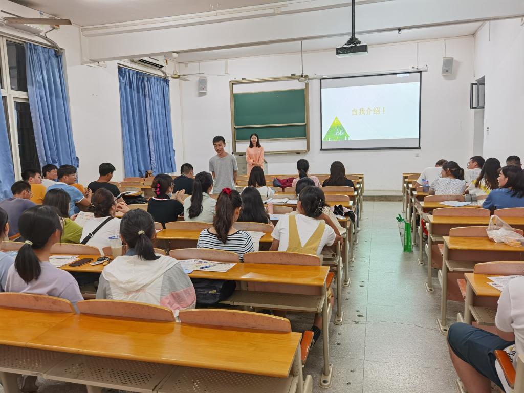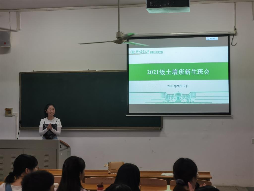 各班新生从本科学校、个人兴趣爱好、专业认识、华农初印象等方面进行自我介绍。来自河南的植物营养班王静同学说:“很开心接下来的日子里能和大家一起学习、共同进步。我相信三年的时间,在座的我们都会有一个质的飞跃。”她说她对华农的初印象就是大,非常大!但是也很美,尤其是夜晚南湖边吹来的沁人凉风和大家挥洒汗水的奔跑身影,总能给人一种朝气蓬勃的感觉。