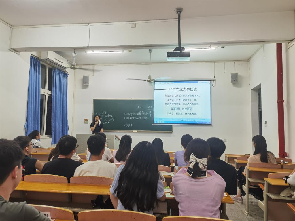 班会期间,学院韵绿合唱团同学前往班级领学了华中农业大学校歌。