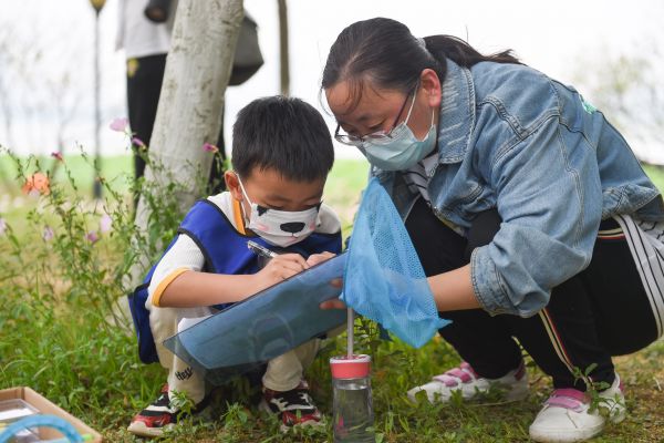 长江日报大武汉客户端5月22日讯 你知道世界上有多少种昆虫吗?5月22日是国际生物多样性日,十余组亲子家庭齐聚沙湖公园鹭园(D区)生态岛,在自然导师刘如达、黄俊铭、李祎鸣、刘宇澳(华中农业大学绿色协会)的带领下,深入昆虫世界,探讨昆虫与生物多样性的关系。
