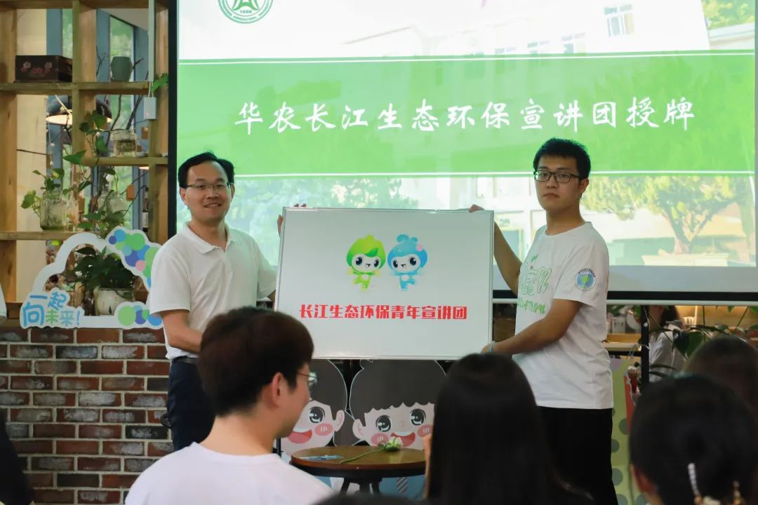 分享结束后,熊海林向绿色协会负责人王丹枫授予生态环保青年宣讲团牌。与会嘉宾将废旧电池投入绿色回收箱中,学生代表向嘉宾赠送环保手提袋,共同启动绿色回收项目。