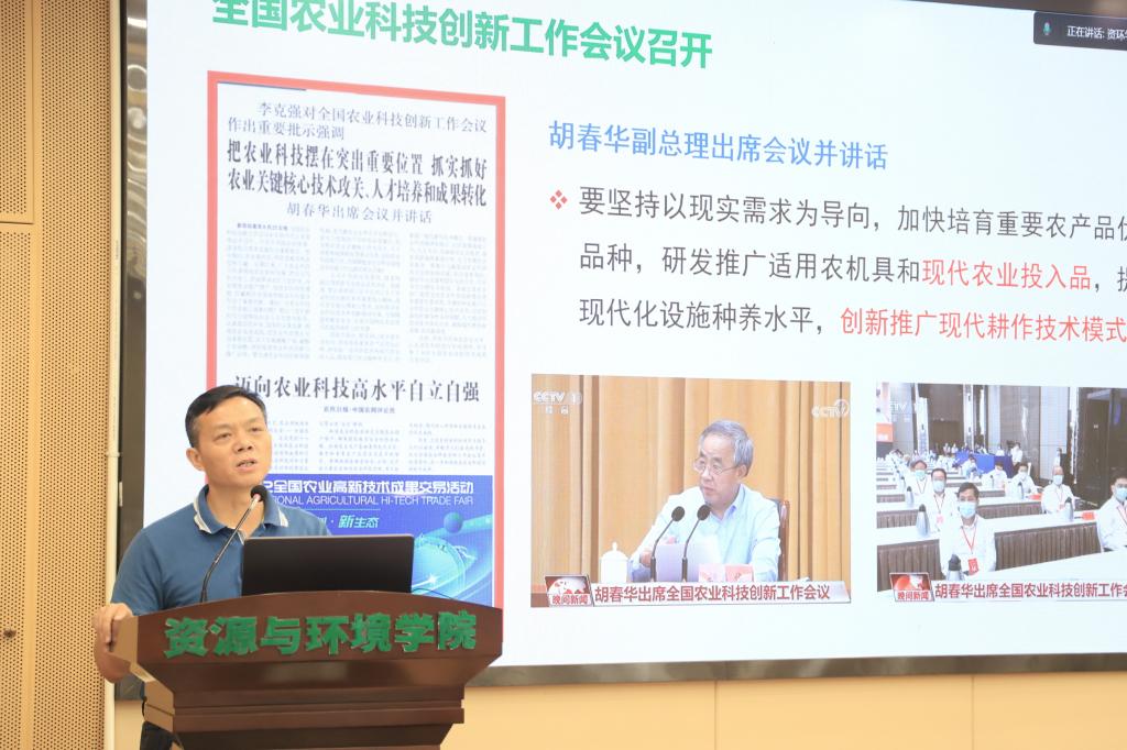 院长谭文峰带领全院教师学习了全国农业科技创新工作会议思想及李克强总理重要批示、胡春华副总理重要讲话精神,指出各位教师应主动了解政策变化、响应国家号召。