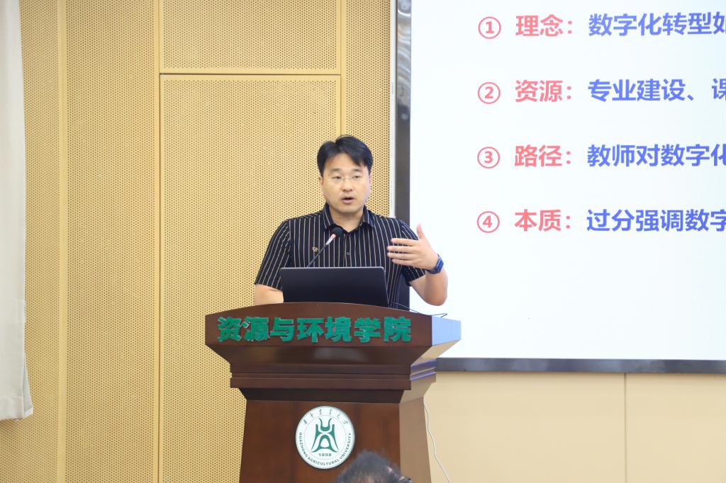 8月29日下午三点,学院2022年秋季教职工大会于西附楼报告厅,本科生院常务副院长李大鹏作“以数字化转型促进教育教学质量提升”专题报告,院长谭文峰带领全院教师学习全国农业科技创新工作会议思想,会议由学院党委书记吕守华主持。