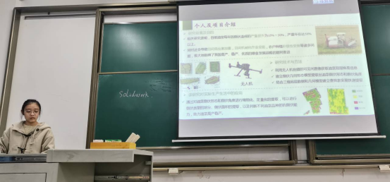 地信2001班尹叶平作为院级SRF项目《基于低空遥感的大田油菜倒伏性状快速获取方法研究》的负责人,从项目介绍、申报流程、实验过程、结题答辩、个人经验几个方面进行了分享,在申报流程方面她提醒同学们要尽量把项目立足于较小的点,不要大而化之的写,在结题答辩方面她提醒同学们要注意控制时长、语速,表达清楚,从个人感悟方面她谈到要“踏实做事,全力以赴”,做项目需要思考和尝试,在实践过程中有所收获。