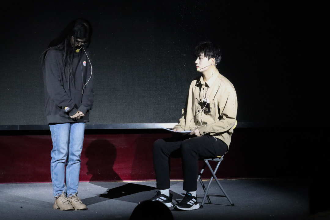谈到创作理念时,编剧李德伟同学说道:“我们当代大学生面对很多期待,时常感到压力。这些期待和压力让我们没有办法遇见真实的自己。所以我们编排这部情景剧来鼓励大家寻找真实的自我。”青芒剧社在剧中传递这样的理念,剧外也同样践行着。在社长姜珍京同学的带领下,每位演员的特色和更好的一面得以展现。参演演员中很多都是初次接触话剧这一领域,却意外地贴合角色,交出了满意的答卷。他们直言,从角色身上或多或少看到了被藏起来的那个自己。
