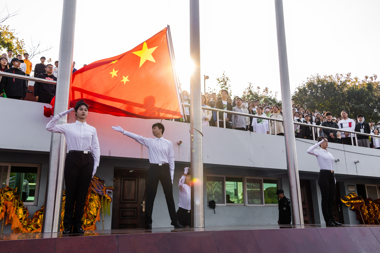 入场式结束后,现场举行了庄重的升旗仪式,全体师生起立,高唱国歌。随后,舞龙舞狮表演将现场气氛点燃,全民健身体操更充分激发了广大师生运动积极性。