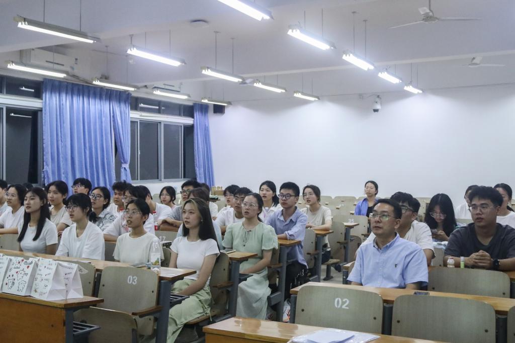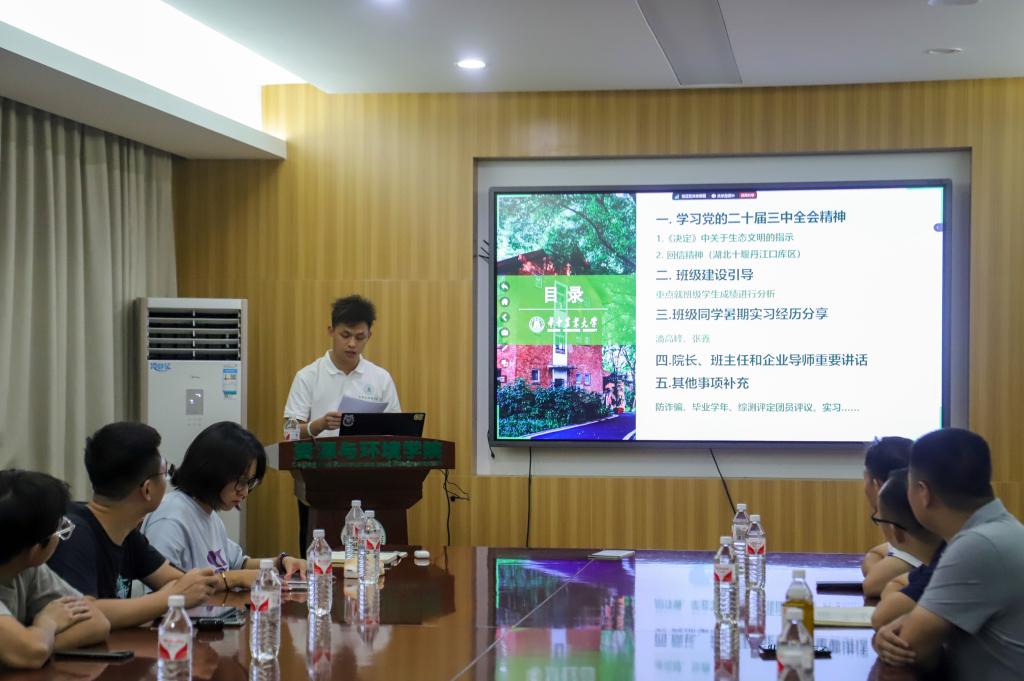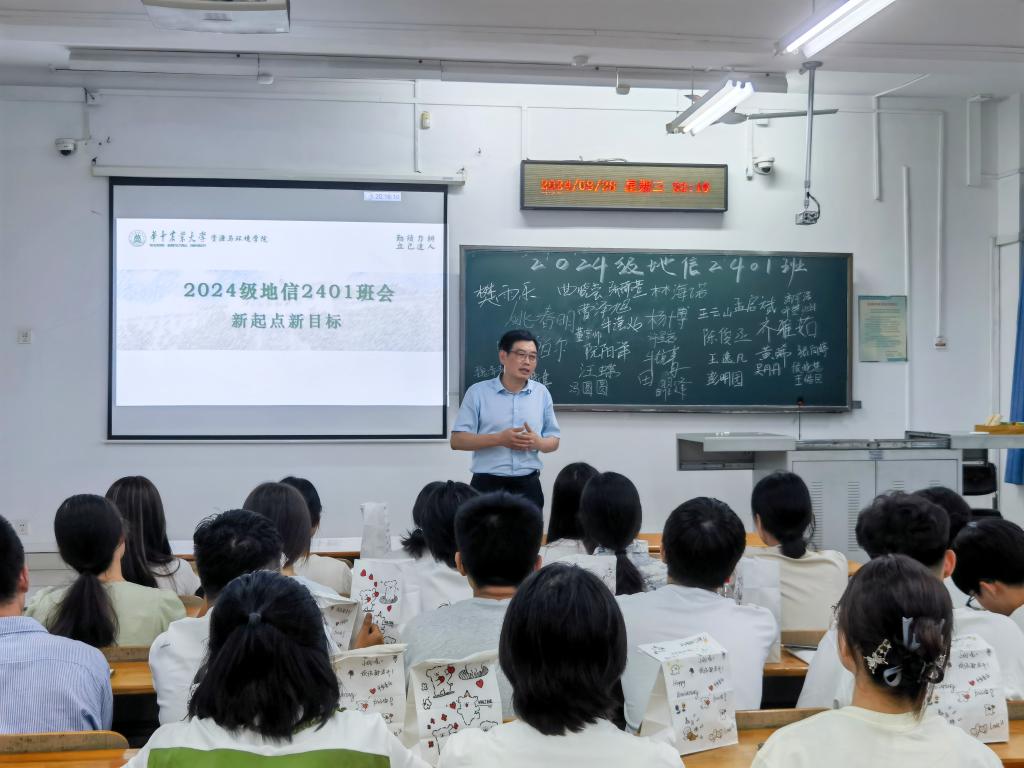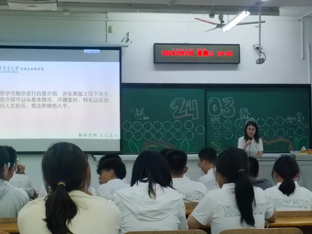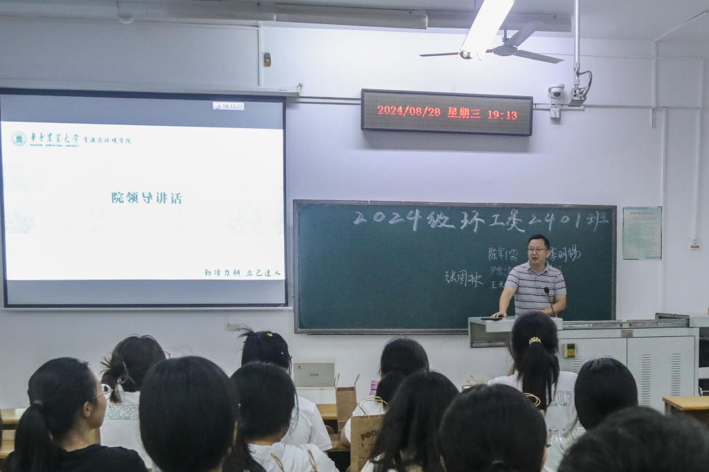 在环工类2401班的班会上,副院长蔡鹏和同学们分享了自己作为土生土长华农人的求学经历,他希望同学们在良好的校园氛围中找到个人目标、全面发展,为将来的自己交上一份满意的答卷。