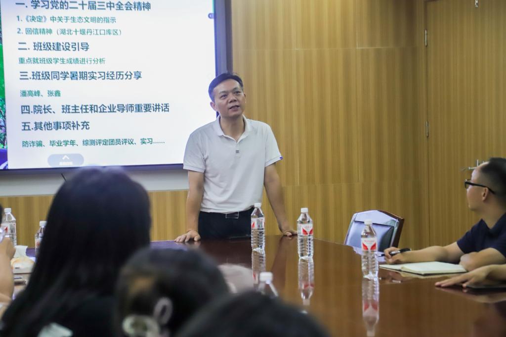 环工类2403班的班会上,副院长王昭提醒同学们要做好规划,进入大学意味着开始独立学习,要更加自律,注重德智体美劳全面发展。