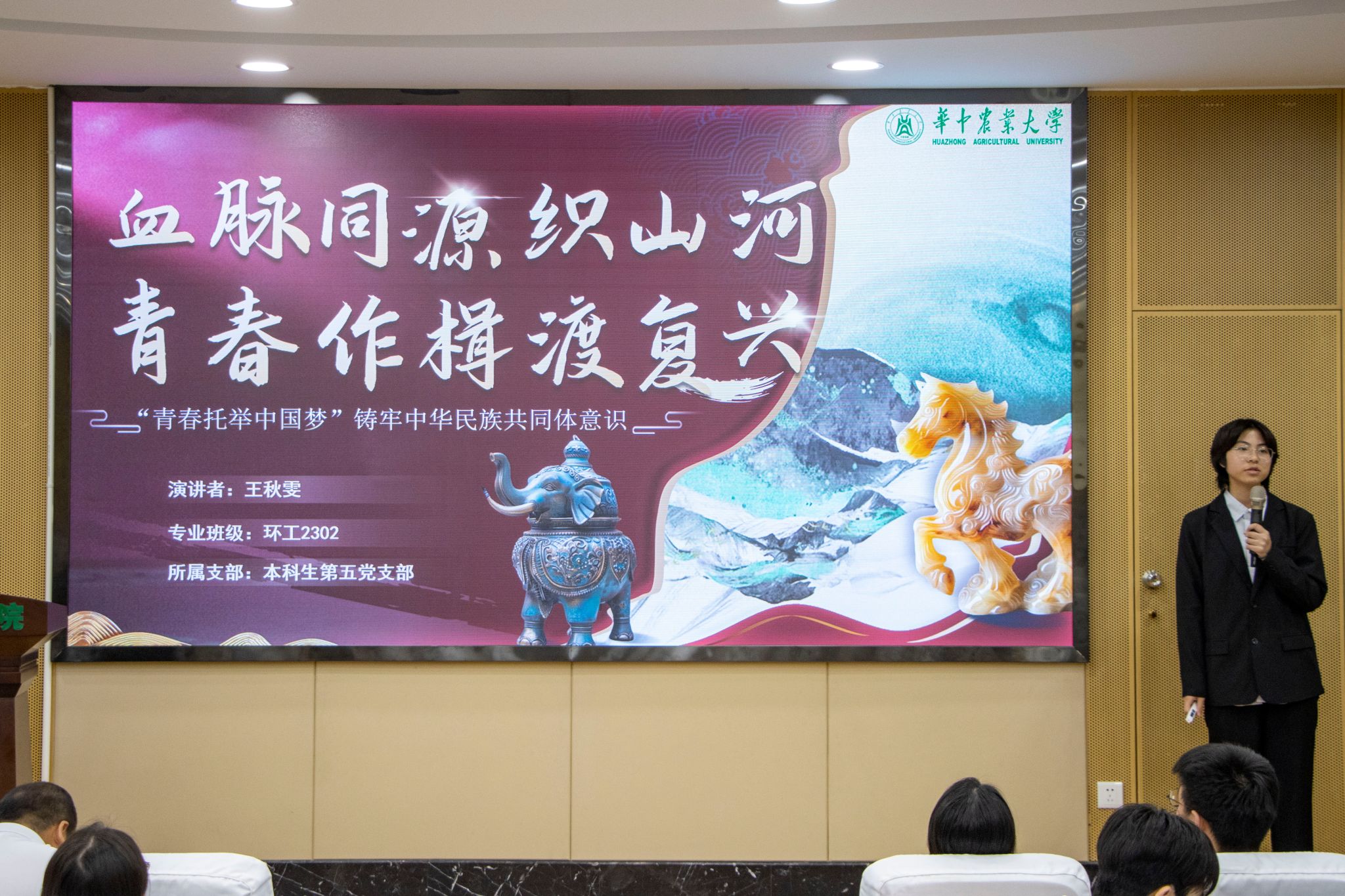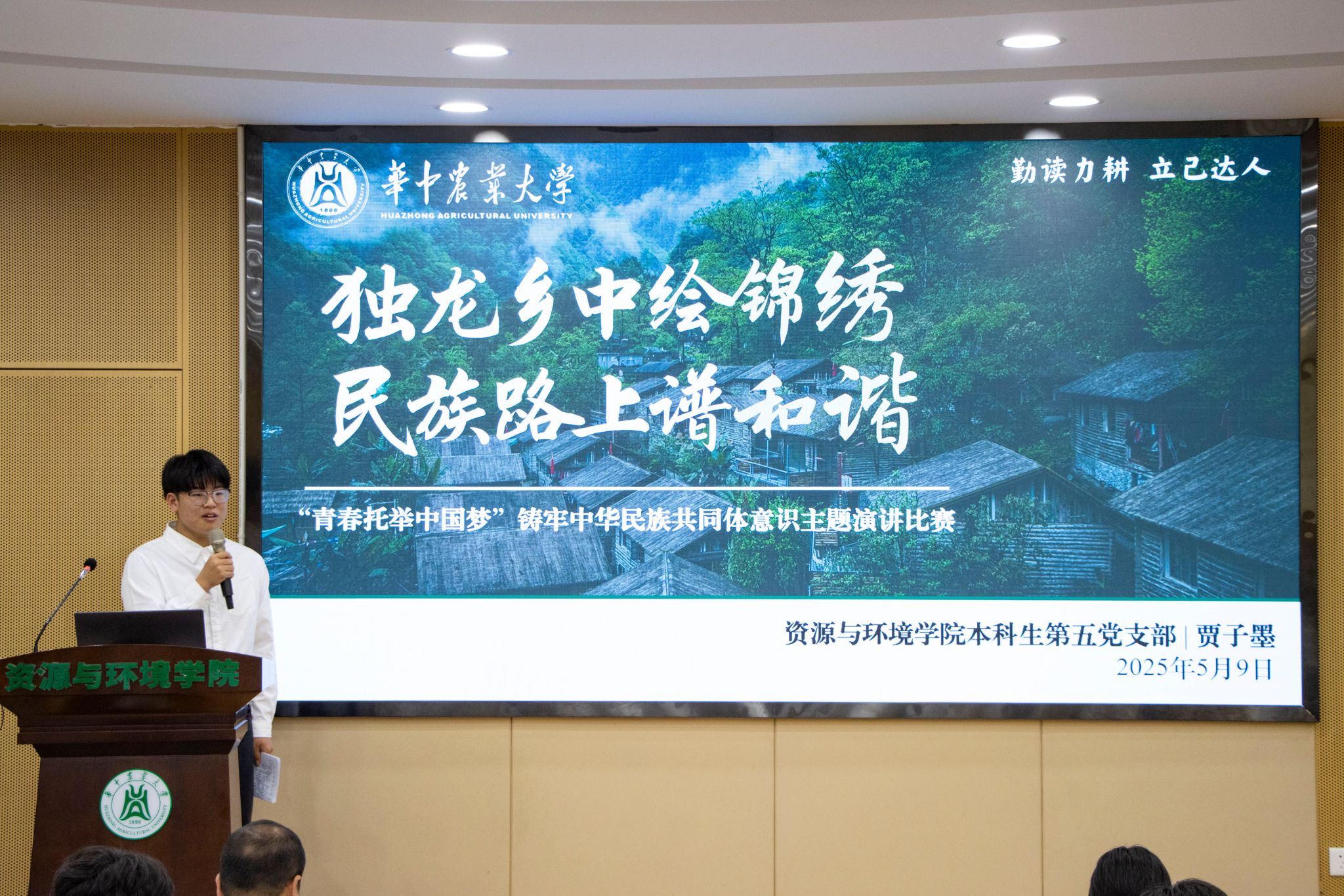 农资2302廖伟以《聚青春星火,燎原绿色疆域》为题,回顾了不同民族为改善生态环境付出的努力。他表示,这些变化展现了科技与团结的力量,让绿水青山变成金山银山。