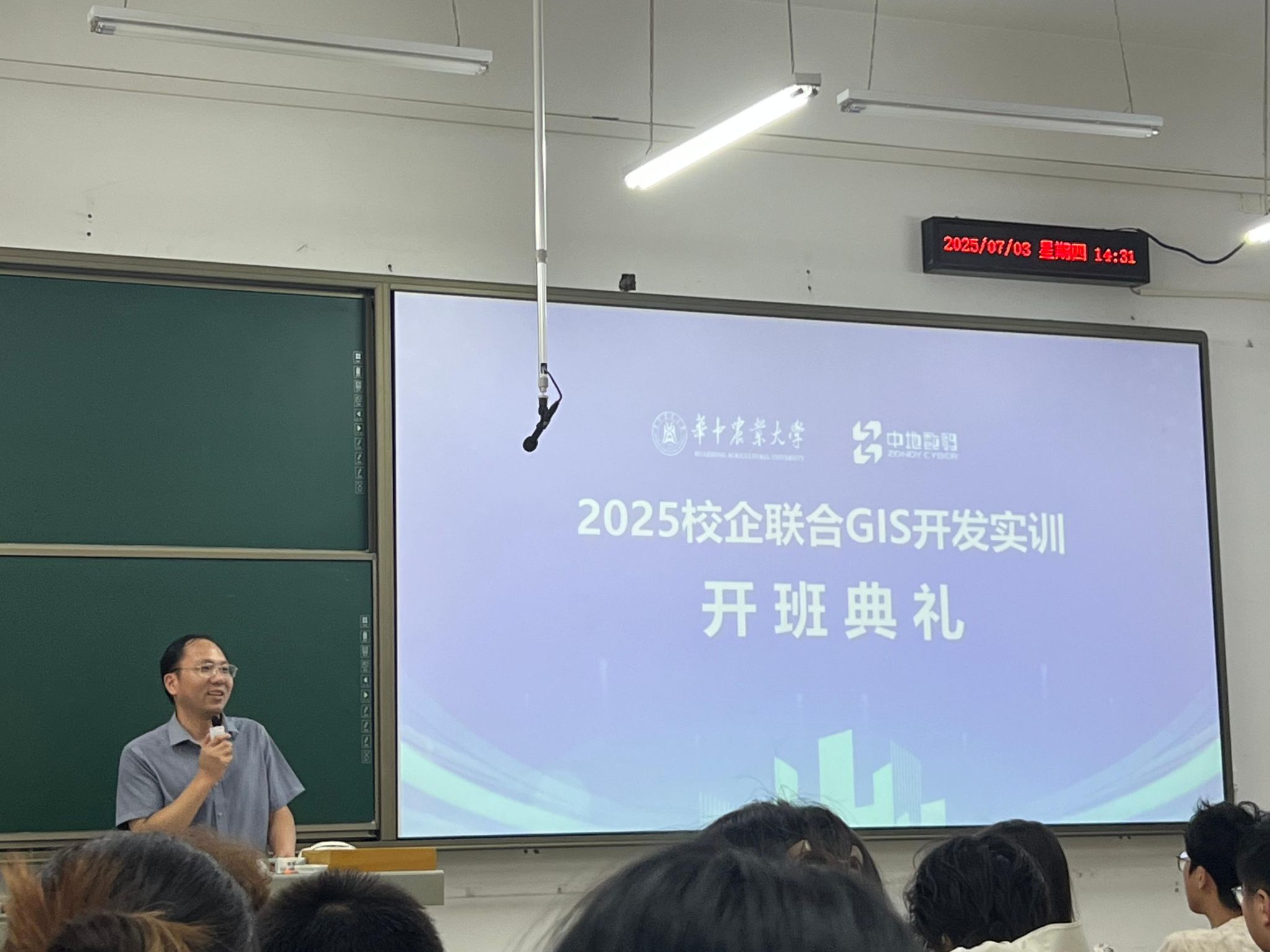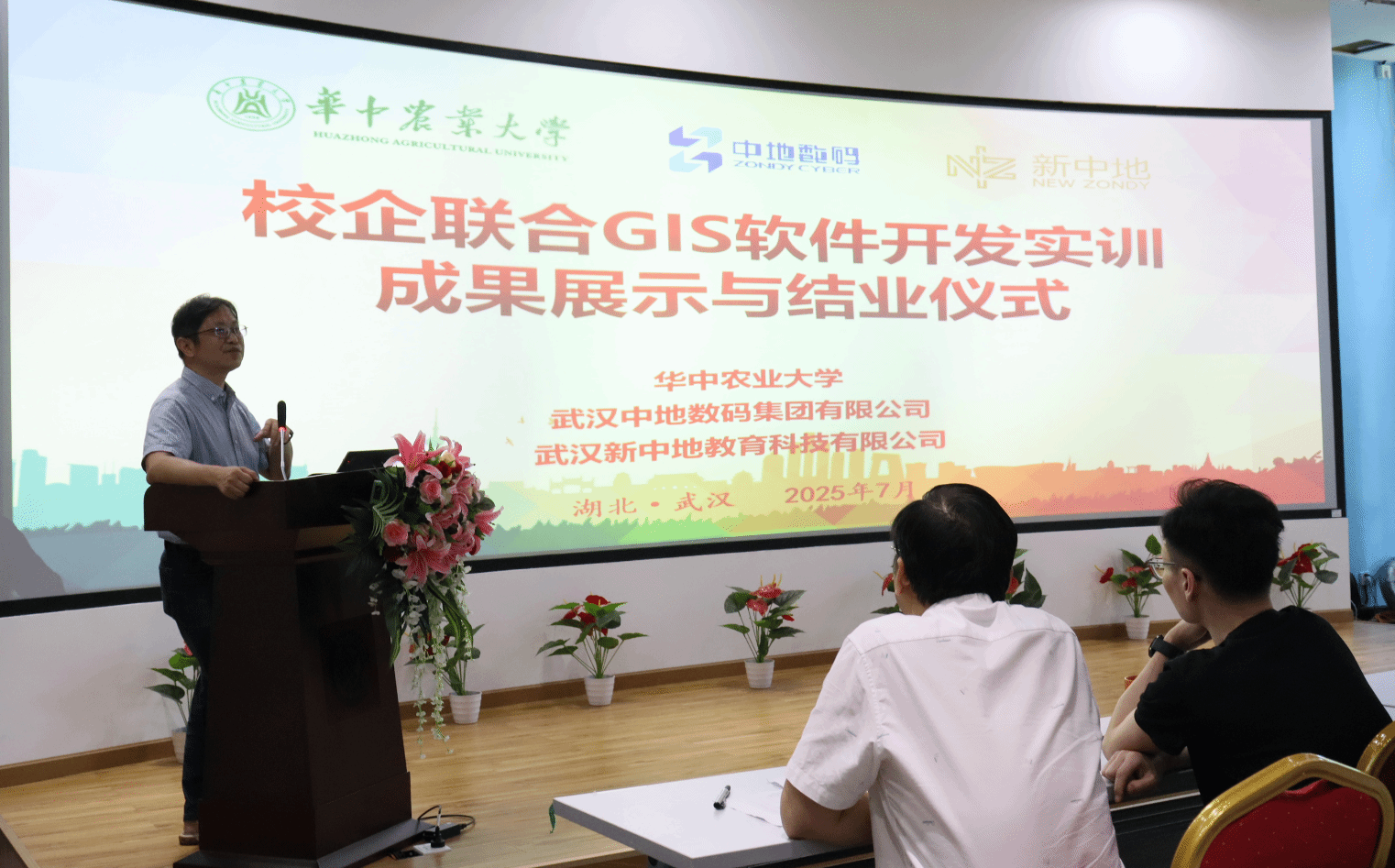 2025年7月25日,由学院与武汉中地数码集团有限公司联合举办的智慧城市构建校企联合实训在中地科技园学术报告厅圆满结业。买球赛的app官网地理信息科学系主任王天巍、新中地教育高校合作部艾伟老师、新中地教育教研主任方胡朝等领导老师和全体参训学生参加了结业仪式。此次实训不仅是对学生实践能力的一次重要检验,更是学院深化校企合作、推动产学研融合的生动实践。