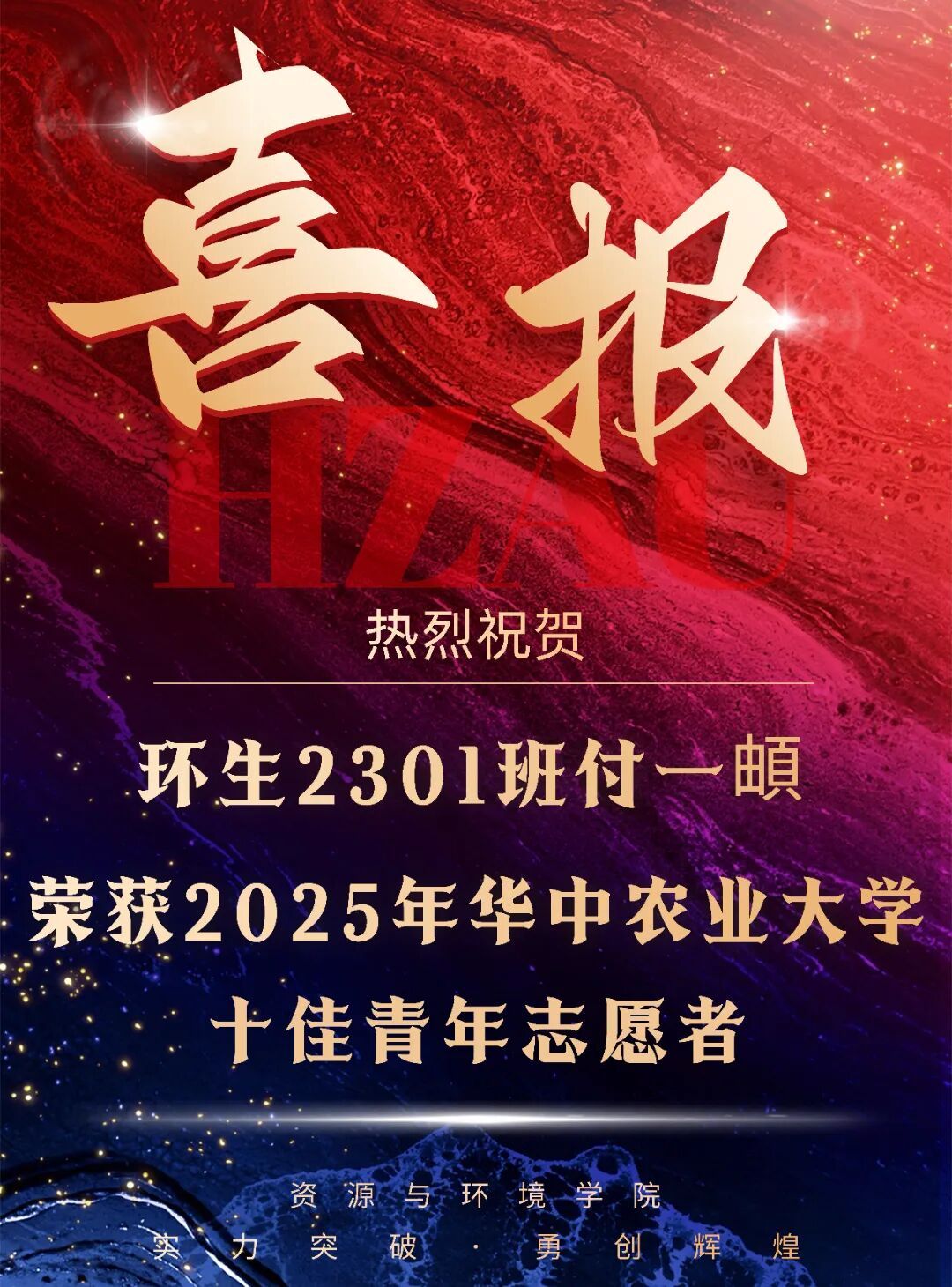 喜报 | 我院学子付一頔获评校2025年“十佳青年志愿者”