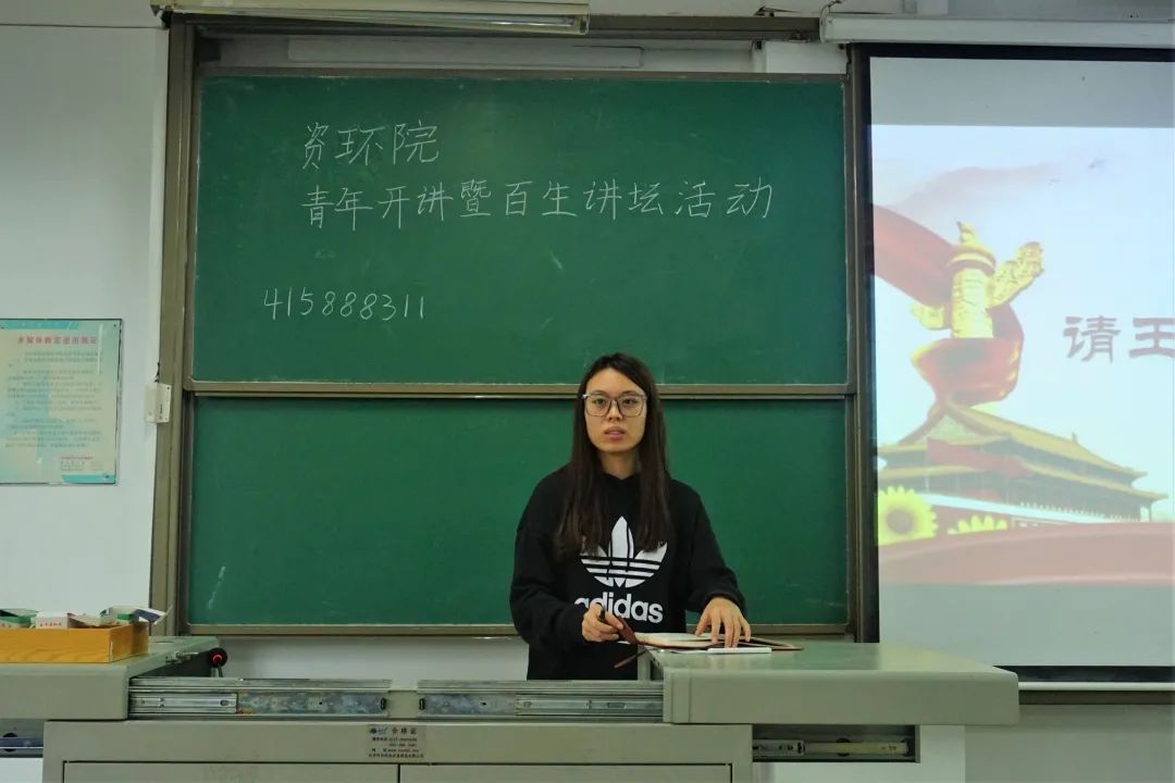 环生1901班的冯晨在演讲过程中穿插了歌曲,用《东方红》和《走进新时代》代表了我们祖国的发展历程,她从父母的爱情说起,从“小家”的变化观察国家的兴盛过程。冯晨还把党史的发展历程与个人成长生活相结合,提到了自身发展和党史的关系。她说:“我们要学好科学文化知识,并将所学内容运用到实践当中。我也相信在我们的共同努力之下,一定能够谱写出国家富强更加辉煌的篇章!”