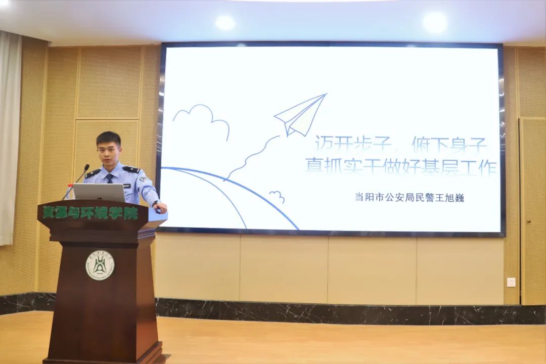 为帮助同学们清晰地了解基层生活,6月19日上午,我院生涯规划与职业发展部在西附楼报告厅举办了第202107期绿博轩暨校友故事分享会活动,本次活动邀请了我院2020届毕业生、湖北省当阳市公安局民警王旭巍进行分享。