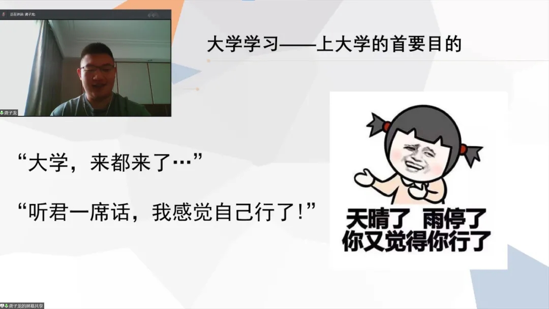 本次学涯分享会让新生们对大学生活有了进一步的了解,也让同学们在进入校园之前,提前对自己的大学生活有一个简单的规划,以积极的心态迎接自己的大学生活。